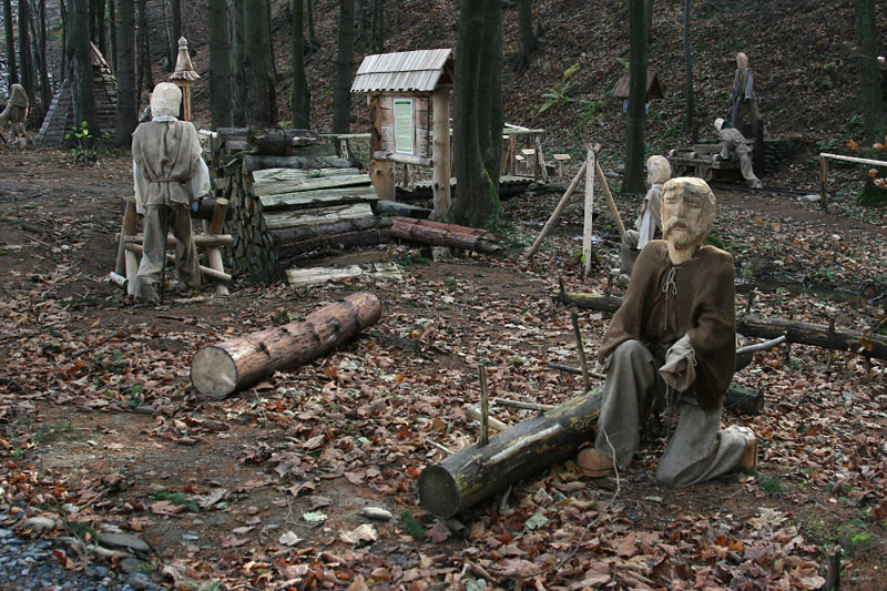 Příjemnou procházkou objevíte tajemství místních usedlíků v souboji s horami a drsným podnebím. Dřevěné postavy zachycené ve svém reálném prostředí lemující trasu, napoví něco o místních lidech, zdrojích jejich obživy, historii a bohatství tohoto kraje. Překvapí vás důvtip dřevařů při přepravě kmenů v podobě fortelně zbudované lesní železnice, ukázky pálení dřevěného uhlí, těžby dřeva, apod.