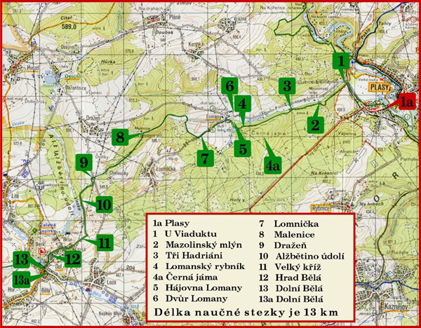 | Konec: | Dolní Bělá i Plasy /stezka je obousměrná/ |