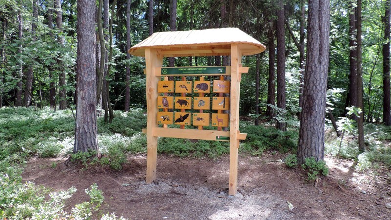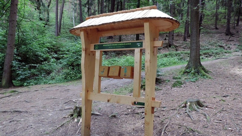 Naučná lesní stezka má 5 zastavení, které tvoří dřevěné stojany s pohyblivými prvky. Děti hravou formou seznámí s životem v lese. Jednotlivá zastavení jsou orientována na rostliny, dřeviny a živočichy: Co kolem nás kvete, Listnaté stromy v našich lesích, Kdo bydlí u vody, Pexeso s lesními zvířátky, Jehličnaté rostliny v našich lesích. Součástí stezky je dřevěný altán „Vodní chrám“ s obnovenou lesní studánkou, který slouží návštěvníkům k odpočinku a relaxaci.