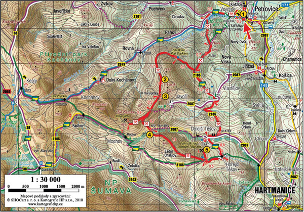 | GPS - začátek: | 49.2184797222, 13.4404997222 |