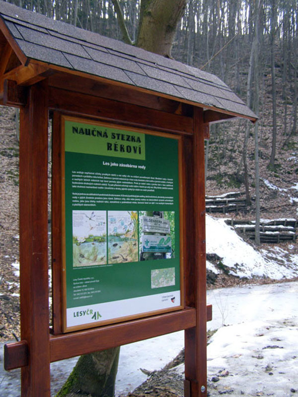 V prostoru mezi obcemi Pozořice a Viničné Šumice protéká Koválovický potok, který je pravostranným přítokem potoka Rakovce. Vodní tok zde nemá dostatečnou kapacitu, vyléval se z břehů a poškozoval lesní cestu. V roce 2008 zde Správa toků – oblast povodí Dyje se sídlem v Brně provedla citlivé úpravy stabilizující podélný profil potoka včetně jeho přítoků s cílem zpomalení transportu splavenin při přívalových srážkách. V kritických úsecích bylo provedeno ochránění lesní cesty ze strany vodního toku kamennou rovnaninou. Byly zde zbudovány srubové a drátokamenné přehrážky, brody a dřevěné prahy. Tyto zdařilé zásahy do přírody slouží zároveň návštěvníkům lesa jako ukázka citlivého přístupu správce toků k přírodě v dané lokalitě a jsou zároveň součástí vznikající naučné stezky.