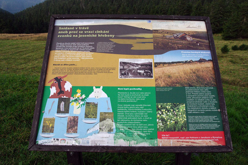 Naučná stezka vás provede nejvyššími partiemi Jeseníků s nezapomenutelnými výhledy do všech světových stran. Jako na dlani spatříte čarodějnické Petrovy kameny, uříznutý vrchol přečerpávací vodní elektrárny Dlouhé Stráně, lázně Jeseníky a mnoho dalších míst. Seznámíte se s unikátní flórou a faunou tohoto území. Cestou se také dozvíte pár užitečných rad pro bezpečný pobyt v horách. A něco málo o tom, jak se ve zdejších drsných podmínkách dříve hospodařilo.