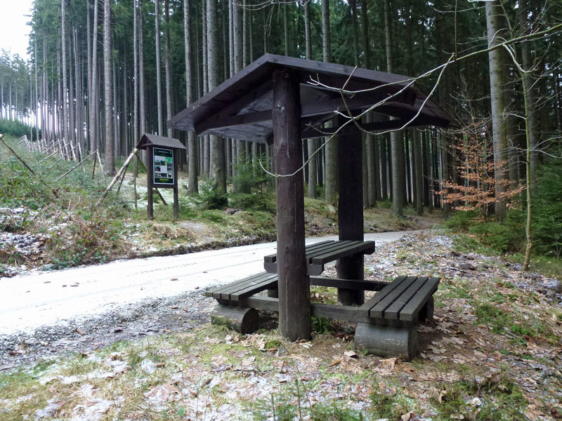 Mezi zastávkou č. 1 a č. 2 krytý altán, u zastávky č. 5 odpočívadlo.