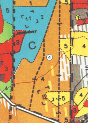 Nestejnorodá kmenovina na mírně zvlněné J expozici. Kyselá jedlová doubrava s bikou chlupatou na plošinách a v rovinatém terénu. Podloží jsou štěrkopískové překryvy na křídových slínech, půdní typ – oglejená slinovatka. V proředěných částech porostu je travní buřeň, pomístný nálet SM, BO.