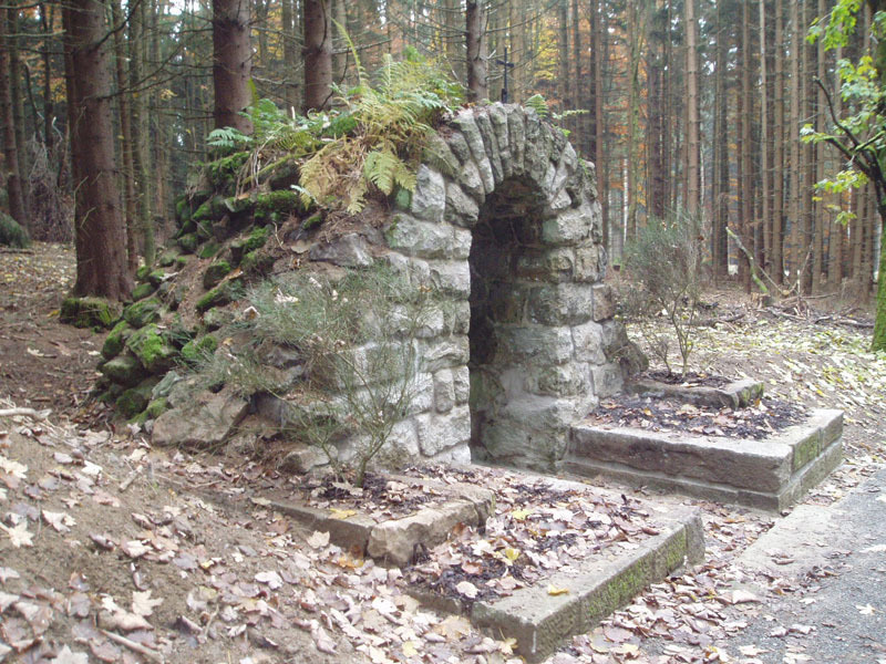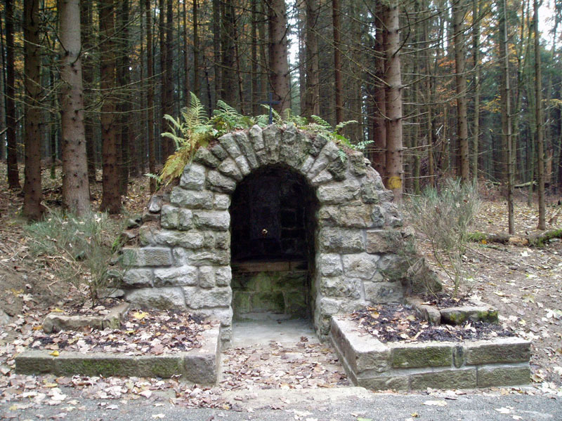Kaplička v podobě jeskyně, inspirována jeskyní v Lurdech.