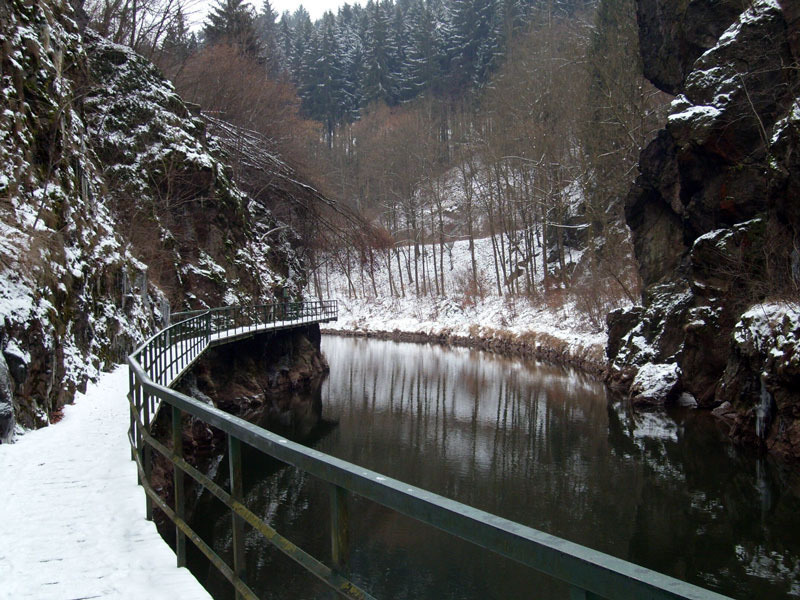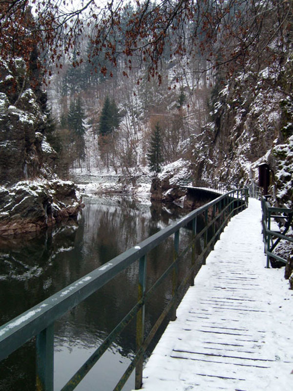 Souběžně, ve vyšší části údolí, vede Kamenického stezka s vyhlídkou – Kočičí skálou. Riegrova stezka je určena pouze pro pěší.