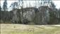 Zřícenina středověkého hradu, poblíž krasové útvary.