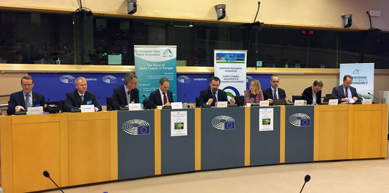 Konference se konala den poté, co Evropská komise předložila v rámci energetického balíčku „Čistá energie“ návrh nových kritérií udržitelnosti pro lesní biomasu. Hlavním cílem Unie je navýšit do roku 2030 podíl obnovitelných zdrojů na 27% a snížit tak celkovou závislost na fosilních palivech. Lesní hospodářství může v tomto tématu sehrát klíčovou roli. „Udržitelnost lesní biomasy musíme posuzovat v širším rámci udržitelného hospodaření v lesích. Poskytnutí biomasy pro bioenergii je jedním z mnoha ekosystémových služeb, které lesy zajišťují. Vysoký standard hospodaření dokládají i dobrovolné certifikační systémy,“ uvedl Daniel Szórád. Ve středoevropských i skandinávských lesích praktikují jejich správci, a tedy i Lesy ČR, taková opatření, která podporují kvalitní a zdravé porosty. Ty budou odolné vůči klimatickým změnám i neočekávaným extrémním kalamitám. Konkrétně lesní biomasa jako obnovitelný zdroj má velkou budoucnost, a to především ve srovnání s ostatními fosilními zdroji energie. Lesy a dřevo totiž vážou významné množství uhlíku a podstatně snižují jeho emise. „Tento efekt můžeme podpořit a následně využít, pokud budeme i nadále hospodařit v lesích jako dosud. Zdravé lesy dají šanci obnovitelné energii,“ pokračoval generální ředitel českých státních lesů Daniel Szórád. Neznamená to ale konzervaci lesů, tedy pouhou ochranu porostů, ale aktivní hospodaření v nich, tedy obnovu i výchovu lesa s ohledem na aktuální klimatické změny. Na tom se shodli i další zástupci státních lesů sdružení v tak zvaném EUSTAFORU (Evropská asociace státních lesů). Konferenci uspořádal předseda meziparlamentní skupiny Evropského parlamentu pro „Změnu klimatu, biodiverzitu a trvale udržitelný rozvoj, český europoslanec Pavel Poc, a švédská poslankyně Evropského parlamentu Jytte Guteland.