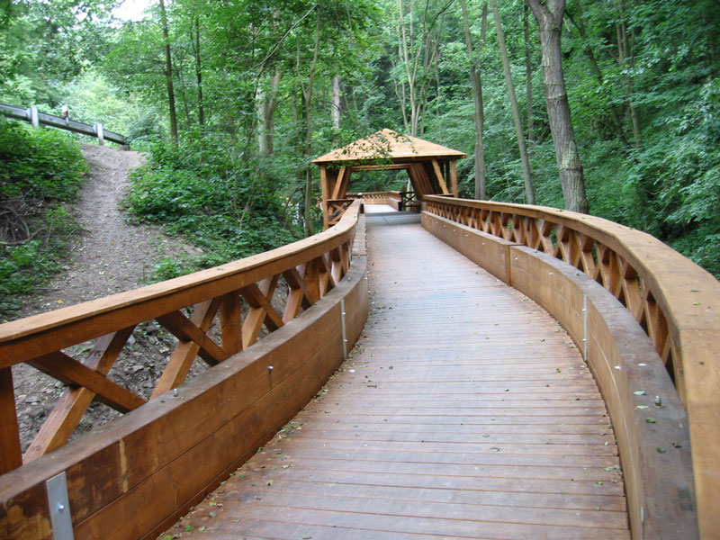 Dřevěná lesní lávka ve Veveří je od roku 2007 součástí přístupové cesty od zastávky lodní dopravy na hrad. Patří mezi stavby, které zaujmou přírodním materiálem i přirozeným umístěním do členitého terénu v okolí hradu. Pěší i cyklisty převádí na 80 metrech přes meandry místního potoka Veverky.