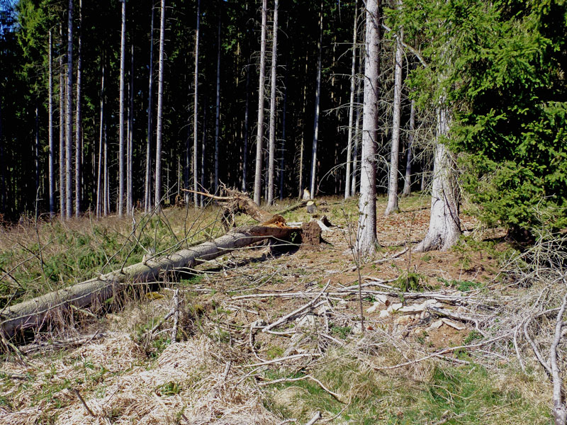 Větrná smršť, která se přehnala Českou republikou počátkem dubna, zasáhla ve státních lesích přibližně 350 tisíc metrů krychlových dřeva. Stromy se většinou jednotlivě vyvrátily, než zlomily. Finanční škody by neměly přesáhnout 20 milionů korun.