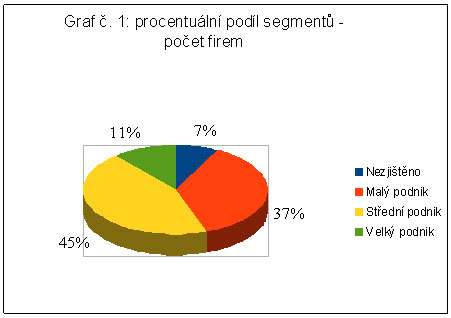V jednoročním tendru výrazně uspěly firmy, které podle mezinárodně uznávaných kritérií Evropské unie patří mezi malé a střední společnosti. Největší podíl jednotlivých zakázek získaly střední (45 %) a malé podniky (37 %), velké podniky získaly podíl 11 % (7 % nezjištěno), viz graf č.1.