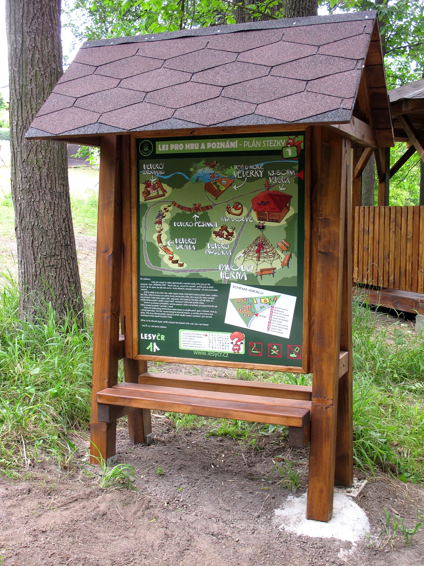 Součástí areálu je krátká dětská naučná stezka s několika informačními a výukovými panely, dřevěný odpočinkový altán zároveň plnící funkci venkovní učebny pro skupinovou výuku lekcí lesní pedagogiky a geobotanická expozice obsahující lokální kameny a rostliny.