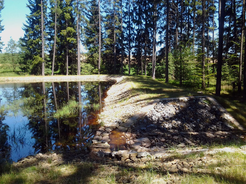 Lesy ČR proto v souladu se zhotoveným odborným projektem celkově obnovily malá vodní díla v této lokalitě. Konkrétně šlo o malou vodní nádrž, u které podnik nechal zrenovovat sypanou hráz, odstranit v průběhu času naplavené sedimenty a vybudovat vypouštěcí objekt včetně bezpečnostního přelivu. Zároveň Lesy ČR obnovily hrazenou tůň s bezpečnostním přelivem, vytvořily další čtyři tůně a mokřad. Na stávajícím toku ještě podnik vybudoval rozdělovací objekt a zajistil revitalizaci obtokového koryta, kterým jsou jednotlivé objekty napájeny.