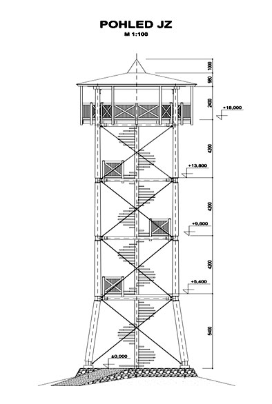 | Objekt rozhledny je opatřen bleskosvodem a uzemněním všech ocelových prvků nosné konstrukce, schodiště a zábradlí. | |