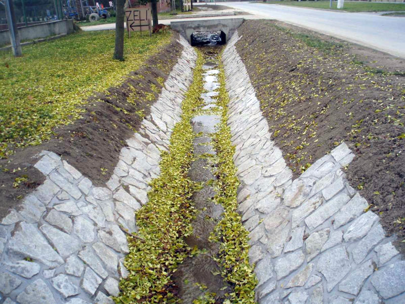 Koryto Radčického potoka bylo zpevněno kamennou dlažbou na cementovou maltu s vyspárováním, stávající mostky a přejezdy k nemovitostem zůstaly zachovány.