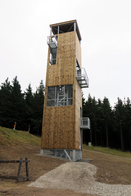 Osmnáctimetrovou rozhlednu postavily Lesy ČR za 3,1 milion korun u horní stanice lanové dráhy v lyžařském areálu Kouty v Jeseníkách. „Stavba vznikla v rámci Programu 2020, z něhož státní podnik financuje projekty zaměřené na podporu a rozvoj veřejně prospěšných funkcí lesů,“ uvedl Tomáš Pospíšil, krajský ředitel Lesů ČR v Šumperku. Dřevem obložená rozhledna má ocelovou nosnou konstrukci i schodiště, je kotvena do betonového základu. Výhled z různých výškových úrovní umocňuje systém průhledů a balkonů v obvodovém plášti objektu. Cenu kraj udělil v kategorii Stavby občanské vybavenosti a úpravy veřejných prostor.