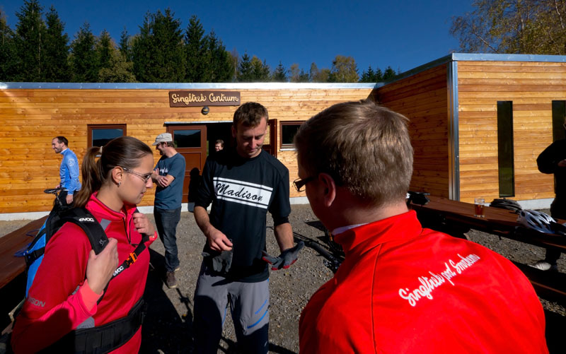 | Cyklista si užívá černé stezky na Singltreku pod Smrkem. Foto: Petr Slavík | Singltrek Centrum Nové Město pod Smrkem: zázemí pro cyklisty. Foto: Petr Slavík |