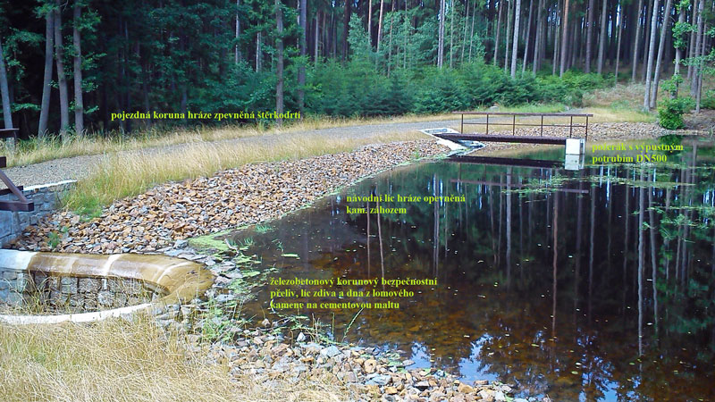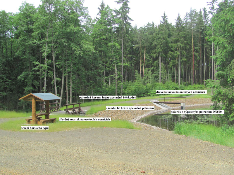 Tři historické nádrže v pramenné části Zámeckého potoka zanesl sediment, zarostly náletovými dřevinami, stejně jako poškozené a protržené hráze bez funkčních výpustných zařízení a bezpečnostních přelivů. K zadržení vody v krajině dávno nesloužily. Rekonstrukce trvala od října 2011 do listopadu 2015. „Ze zátopy i z hráze jsme odstranili sediment a nálety dřevin. Nové vypouštěcí zařízení slouží k manipulaci a regulaci vody v nádrži. Využijeme ho také během údržby či opravy nádrže. Bezpečnostní přelivy zase převedou vodu přes hráz při povodni,“ popsal František Šampalík z Lesů ČR, vedoucí správy toků – oblast povodí Berounky.