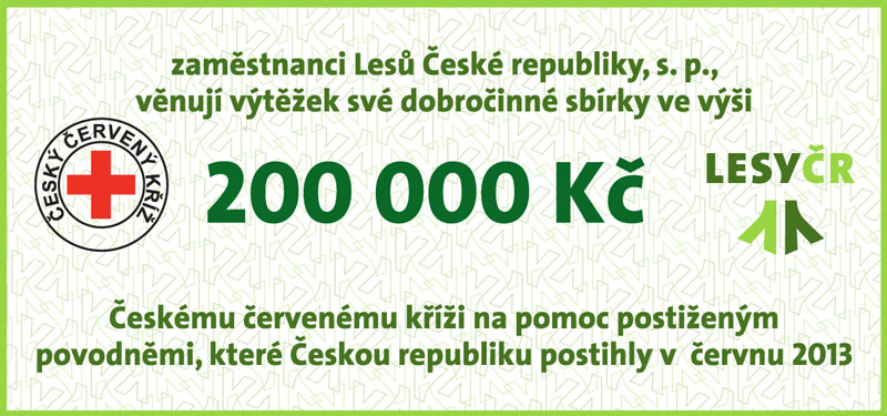 Letošní červnové ničivé povodně negativně zasáhly do životů tisíců našich spoluobčanů. Lhostejný nezůstal osud těchto lidí ani zaměstnancům státního podniku Lesy České republiky, kteří v dobročinné sbírce mezi sebou vybrali částku ve výši rovných 200 000,- Kč. Výtěžek sbírky byl dnes věnován Českému červenému kříži, který má s pomocí povodní postiženým spoluobčanům prokazatelné, dlouhodobé a bohaté zkušenosti.